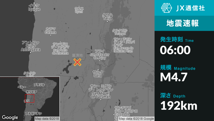 | 震源地 | アルゼンチンのSan Antonio de los Cobresから西64kmの地点 |