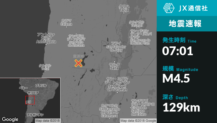 | 震源地 | アルゼンチンのAntofagasta de la Sierraから北北西158kmの地点 |