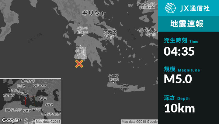 | 震源地 | ギリシャのMethoniから南西22kmの地点 |