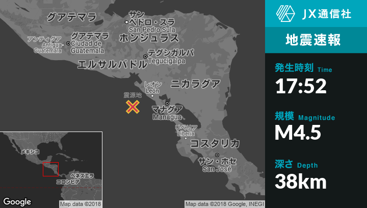 | 震源地 | ニカラグアのCorintoから南西74kmの地点 |