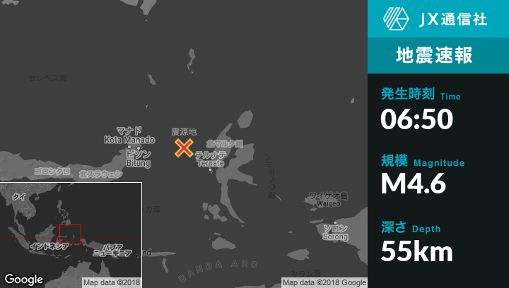 | 震源地 | インドネシアのKota Ternateから北西125kmの地点 |