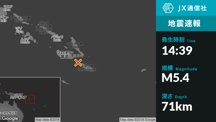 | 震源地 | ソロモン諸島のKirakiraから西北西94kmの地点 |