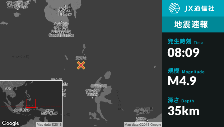 | 震源地 | インドネシアのTobeloから北西224kmの地点 |