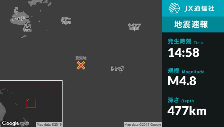 | 震源地 | フィジーのNdoi Islandから東100kmの地点 |