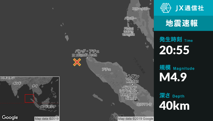| 震源地 | インドネシアのBanda Acehから西南西88kmの地点 |
