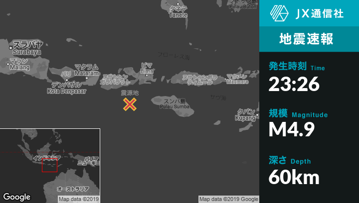 | 震源地 | インドネシアのBoal Atasから南89kmの地点 |