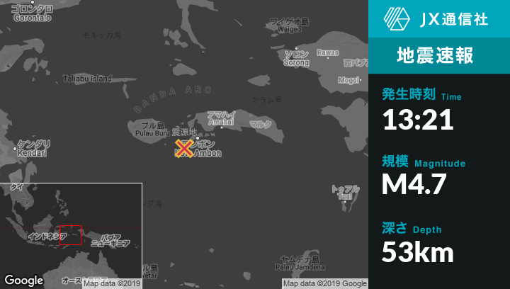 | 震源地 | インドネシアのAmahusuから西南西45kmの地点 |