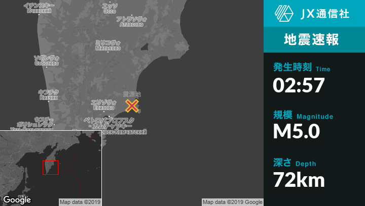 | 震源地 | ロシアのPetropavlovsk-Kamchatskiyから東北東77kmの地点 |