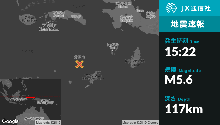 | 震源地 | インドネシアのSaumlakiから北北西189kmの地点 |