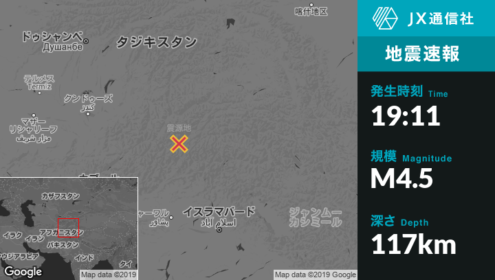 1月04日 19:11頃、パキスタンのChitralから北23kmの地点でM4.5の地震がありました。