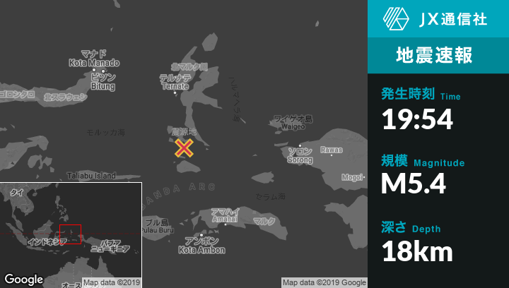 | 震源地 | インドネシアのLaiwuiから北57kmの地点 |