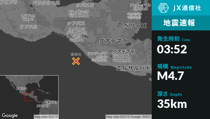 | 震源地 | メキシコのPuerto Maderoから西南西88kmの地点 |