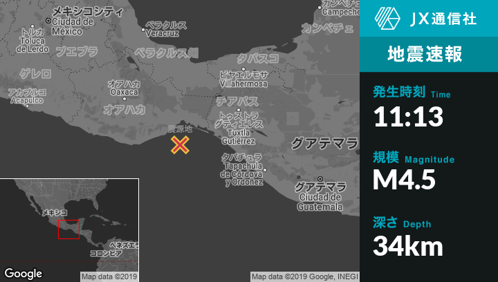 | 震源地 | メキシコのSan Mateo del Marから南46kmの地点 |