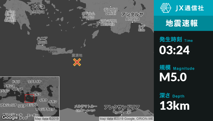 | 震源地 | ギリシャのPalaikastronから南南東74kmの地点 |