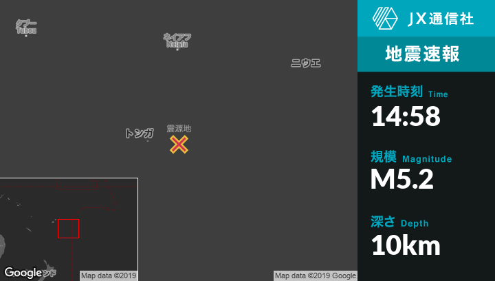 | 震源地 | トンガの`Ohonuaから東105kmの地点 |