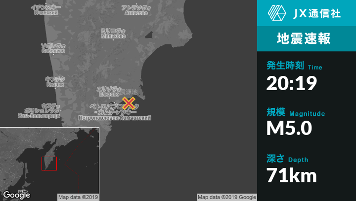 | 震源地 | ロシアのPetropavlovsk-Kamchatskiyから東43kmの地点 |