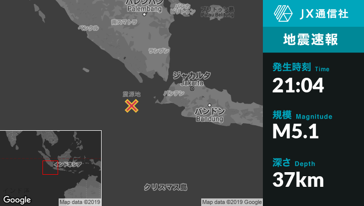 | 震源地 | インドネシアのKotaagungから南南西153kmの地点 |