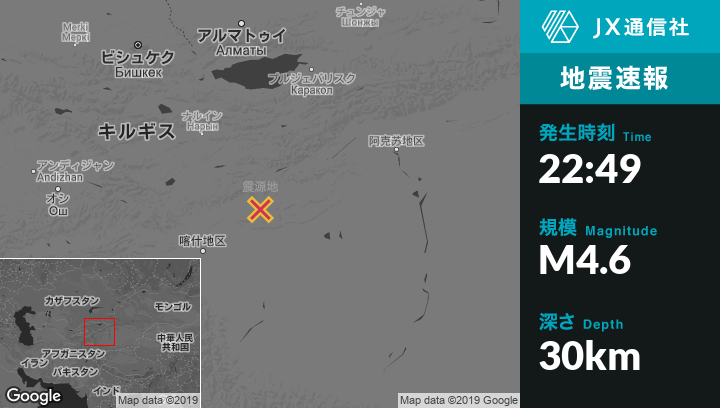 | 震源地 | 中国のArzakから北東116kmの地点 |