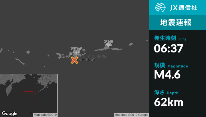 | 震源地 | アラスカのAdakから南南西28kmの地点 |