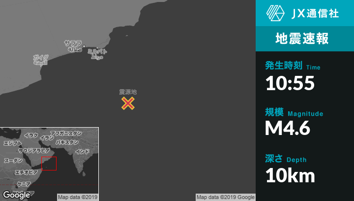 1月15日 10:55頃、イエメンのTamridaから北東318kmの地点でM4.6の地震がありました。