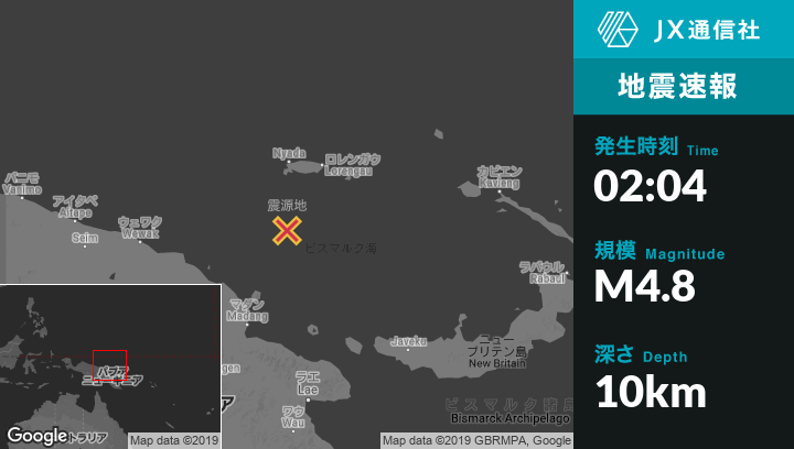 | 震源地 | パプアニューギニアのLorengauから南南西154kmの地点 |