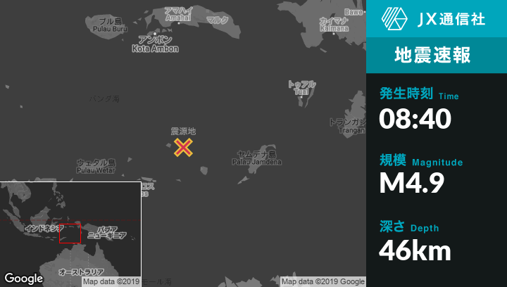 | 震源地 | インドネシアのSaumlakiから西北西267kmの地点 |