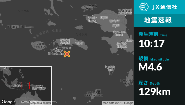 | 震源地 | インドネシアのSaparuaから南東68kmの地点 |