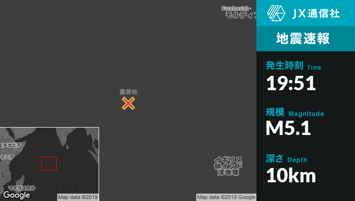 | 震源地 | イギリス領インド洋地域のDiego Garciaから西北西588kmの地点 |