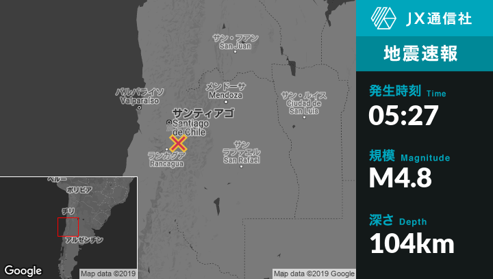 | 震源地 | チリのPaineから東南東36kmの地点 |