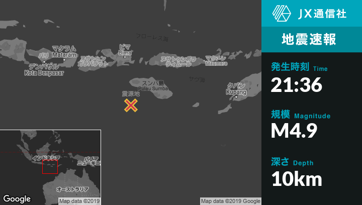 | 震源地 | インドネシアのKahaleから南80kmの地点 |