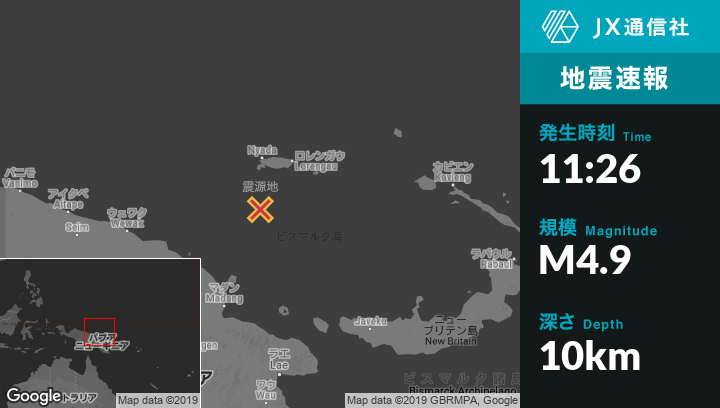 | 震源地 | パプアニューギニアのLorengauから南西132kmの地点 |