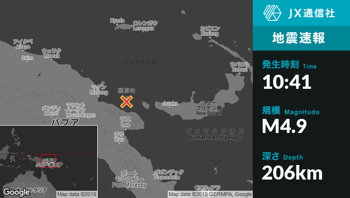 | 震源地 | パプアニューギニアのMadangから東138kmの地点 |