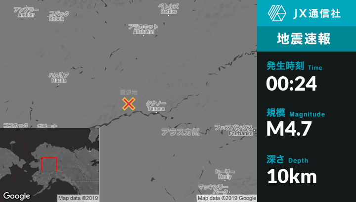 | 震源地 | アラスカのTananaから西北西61kmの地点 |