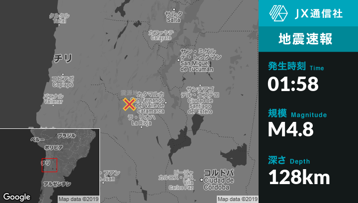 | 震源地 | アルゼンチンのTinogastaから南南東43kmの地点 |