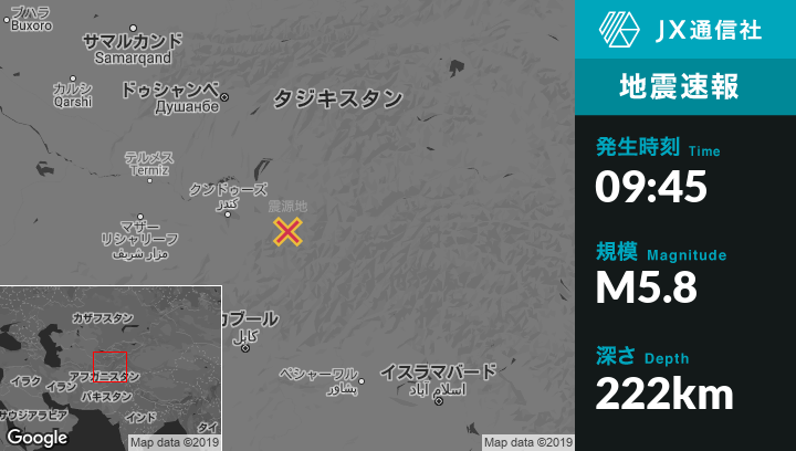 | 震源地 | アフガニスタンのFarkharから東17kmの地点 |