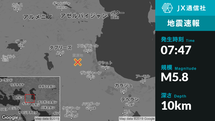 | 震源地 | イランのHashtrudから北東56kmの地点 |