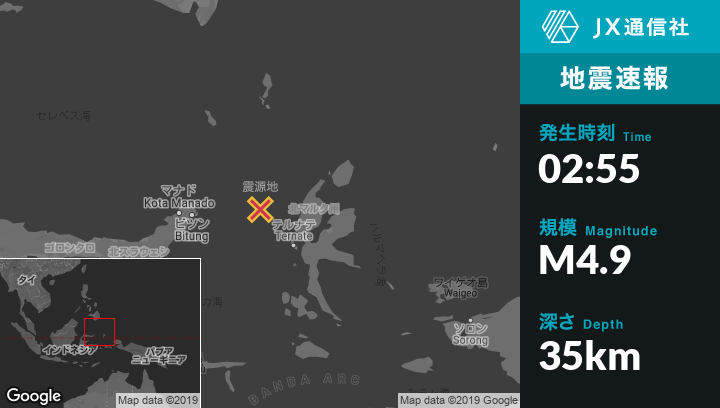 | 震源地 | インドネシアのKota Ternateから北西127kmの地点 |