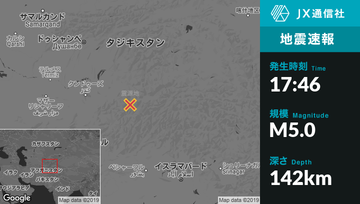 | 震源地 | アフガニスタンのJarmから南44kmの地点 |