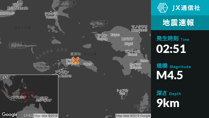 | 震源地 | インドネシアのAmahaiから北北東62kmの地点 |