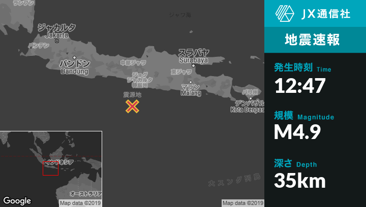 | 震源地 | インドネシアのBambanglipuroから南105kmの地点 |