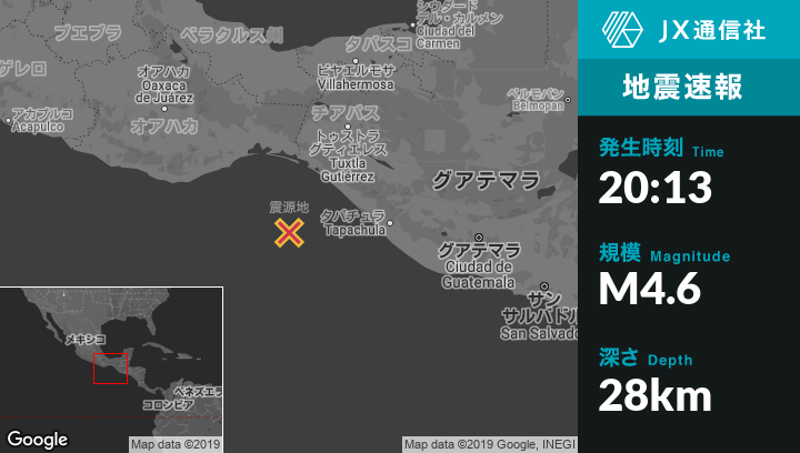 | 震源地 | メキシコのTres Picosから南西138kmの地点 |