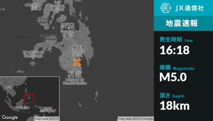 | 震源地 | フィリピンのGomaから東2kmの地点 |