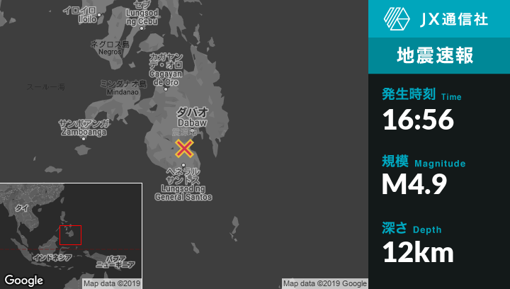| 震源地 | フィリピンのMagsaysayから南南東1kmの地点 |