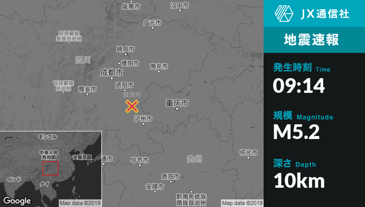 | 震源地 | 中国のNeijiangから西北西12kmの地点 |