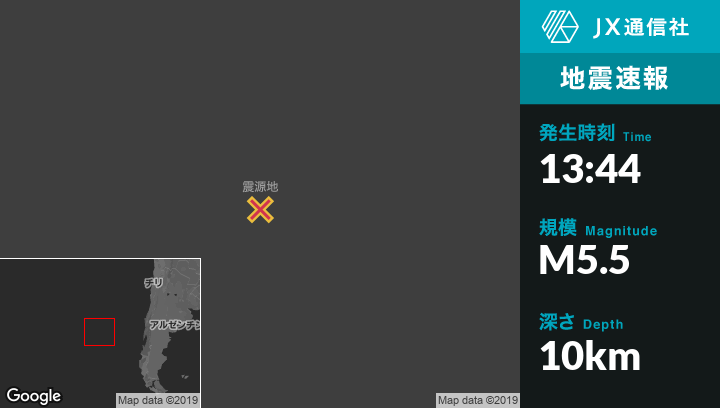 12月18日 13:44頃、チリのSan Juan Bautistaから南西1244kmの地点でM5.5の地震がありました。