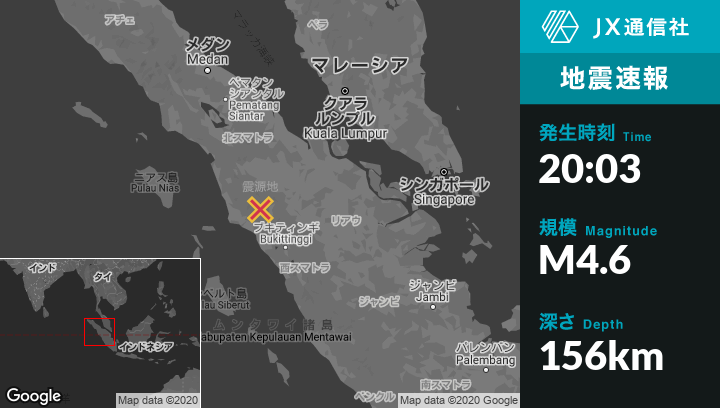 | 震源地 | インドネシアのBonjolから北北西87kmの地点 |