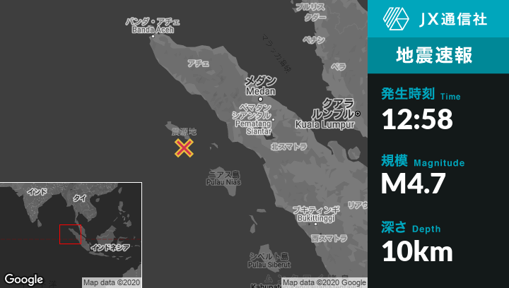| 震源地 | インドネシアのSinabangから南南西32kmの地点 |