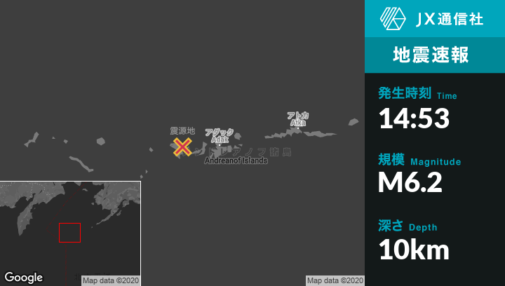 | 震源地 | アラスカのTanaga Volcanoから東22kmの地点 |