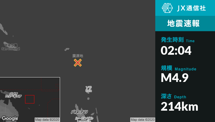 1月24日 02:04頃、ソロモン諸島のLataから南東138kmの地点でM4.9の地震がありました。
