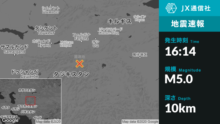 1月24日 16:14頃、タジキスタンのKarakenjaから東11kmの地点でM5.0の地震がありました。